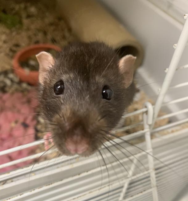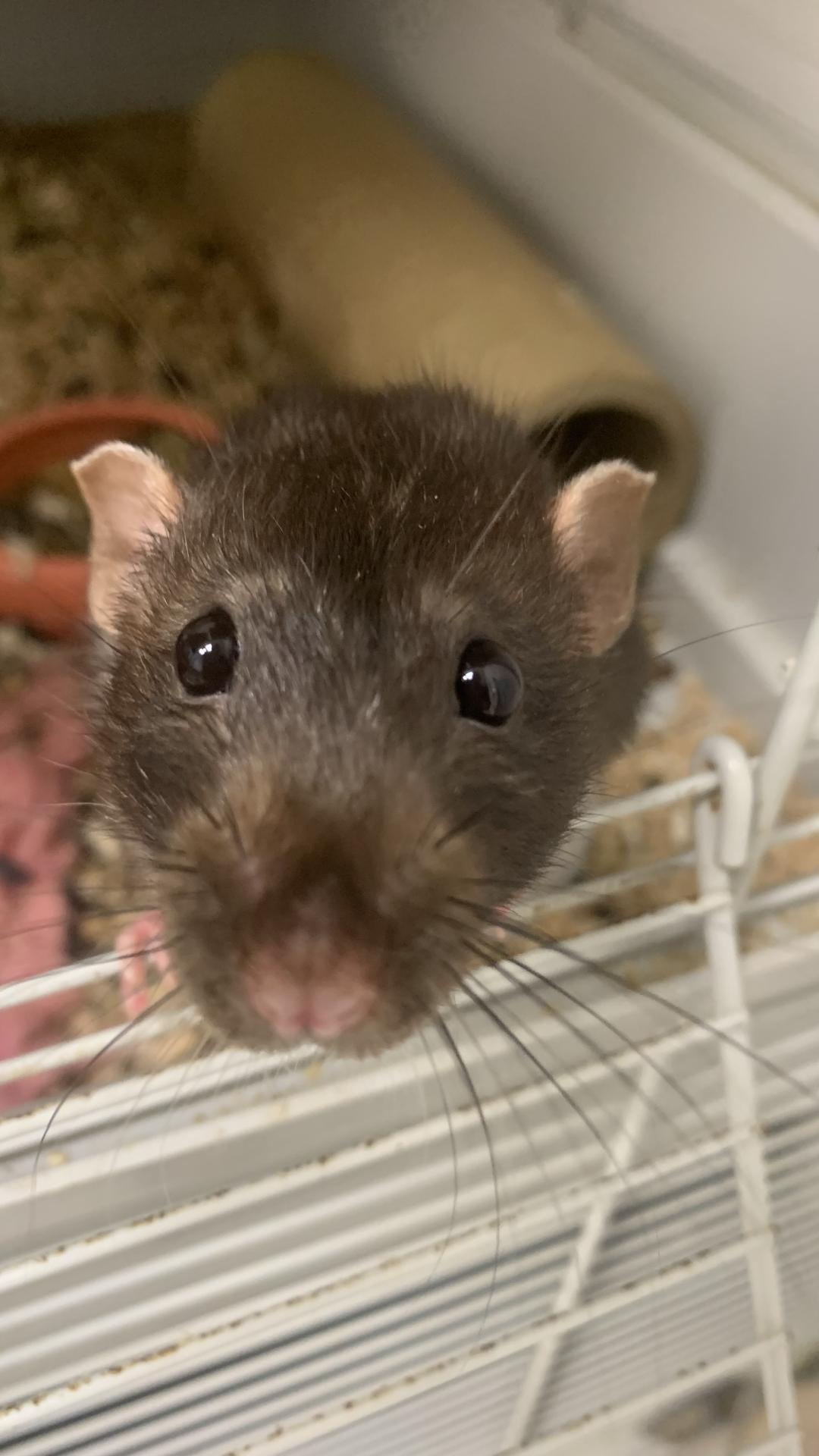 Heniu to szczur, który w lipcu świętował pierwszy rok życia i od początku sprawia wrażenie gościa „obytego z ludźmi”. Nie ma w nim tej ostrożnej rezerwy, jaką często mają szczurze podrostki - człowieka traktuje jak stały element wyposażenia, z którym warto utrzymywać przyjazne stosunki. Gdy ktoś się zbliża, zamiast chować się w kąt, Heniu podchodzi, zaciekawiony i pewny siebie. Mimo odwagi i sympatii do kontaktu, nie jest typem, który sam wskoczy na ręce i rozpuści się w przytulaniu. Lubi być blisko, lubi towarzystwo, potrafi usiąść obok albo oprzeć się o nogę, ale wszystko w swoim stylu i na swoich zasadach. Głaskanie? Jasne, ale bez wciskania go pod pachę jak maskotkę. Jest jak kumpel, nie termoforek.