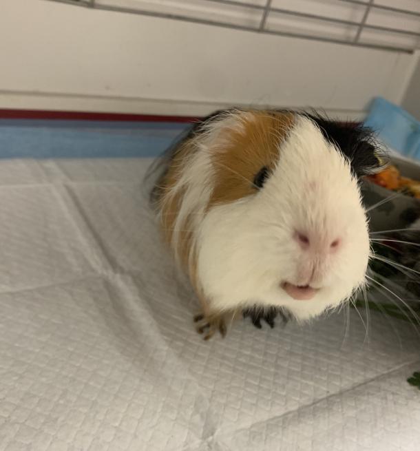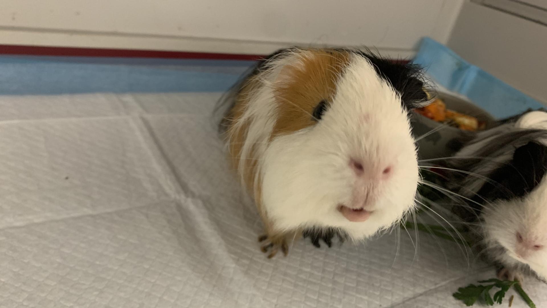 Schabowy to długowłosy tricolorowy tata o niezwykle dostojnym wyglądzie i miękkiej, pełnej barw sierści. Jego futro układa się w eleganckie fale, a połączenie kolorów czyni go prawdziwym „modelem” w świecie świnek. Gdziekolwiek się pojawi, przyciąga uwagę. Ma w sobie dużo dojrzałości - wie, czego chce, ale potrafi też być niezwykle delikatny. Jest spokojny w zachowaniu, ma łagodny, stabilny temperament i rzadko reaguje impulsywnie. W jego towarzystwie człowiek czuje, jakby przebywał z małym, mądrym zwierzakiem.