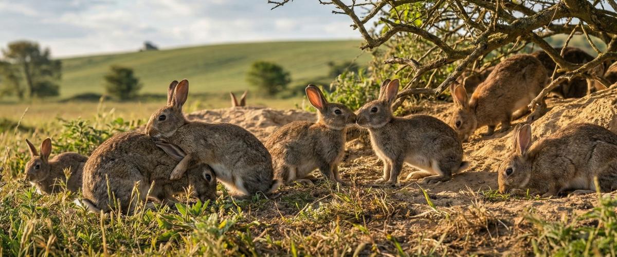 Dziki królik europejski jest gatunkiem rodzimym dla Półwyspu Iberyjskiego i części południowo-zachodniej Francji, ale został szeroko introdukowany - dziś jego populacje (często inwazyjne) występują w wielu regionach Europy oraz m.in. w Australii i Nowej Zelandii, gdzie tworzą złożone struktury społeczne. Podstawową jednostką organizacyjną jest kolonia nor (warren), czyli rozbudowany kompleks podziemnych korytarzy i komór z wieloma wejściami, zamieszkiwany przez stabilną grupę społeczną złożoną zwykle z kilku samców i kilku samic wraz z ich potomstwem, przy czym skład i liczebność zależą od zagęszczenia populacji oraz warunków siedliskowych 12. Większe populacje mogą liczyć nawet kilkaset osobników, choć dzielą się one na mniejsze, odrębne grupy społeczne 3. Grupy te nie są przypadkowymi zbiorowiskami - mają wyraźną, liniową hierarchię dominacji, oddzielną dla samców i samic 4.Samce rywalizują o terytorium i dostęp do samic, a dominujący osobnik zajmuje najlepszą część systemu nor. Samice z kolei walczą przede wszystkim o miejsca gniazdowe - bezpieczne komory, w których będą mogły odchować młode 2. Co ciekawe, obserwacje populacji dzikich królików ujawniły, że samce niekiedy przerywają konflikty między samicami, co sugeruje złożone interakcje i konflikty interesów między płciami wewnątrz grupy 2. Samce i samice mogą też tworzyć trwałe więzi partnerskie - obserwowano pary pozostające w bliskim towarzystwie przez okresy dłuższe niż rok 1.