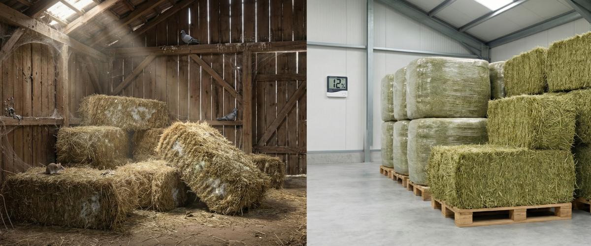 Zapytaj o wentylację i kondensację wilgoci. Czy ktoś w ogóle mierzy wilgotność - higrometr kosztuje grosze, a jeśli sprzedawca nigdy o tym nie myślał, to przechowywanie jest „jak wyjdzie”. W rzetelnym magazynowaniu siana wilgotność jest monitorowana, a celem jest utrzymywanie warunków, które ograniczają rozwój pleśni i roztoczy (niska wilgotność powietrza oraz odpowiednio suche bele). Bez monitoringu nie ma mowy o kontroli jakości - jest tylko nadzieja.
